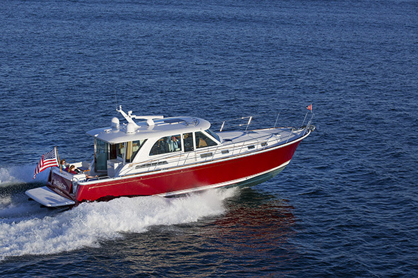 The new 45 offers 2 staterooms w/ 2 full heads, a half-up galley and spacious cockpit. Her unique proposition is the functional utility space between the engine room and guest stateroom–reserved for optional accessories such as washer/dryer, gyro stabiliz